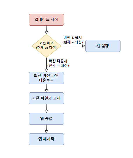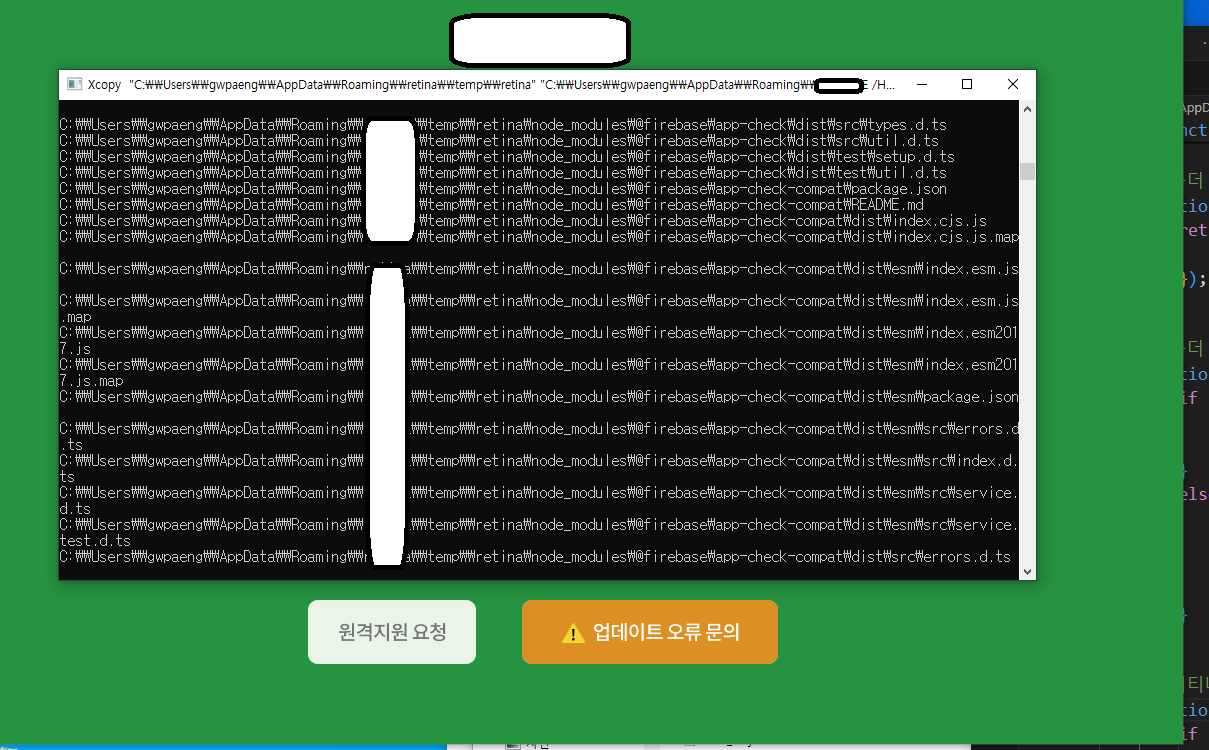 업데이트 부분의 기존 파일과 교체 부분에서 문제가 발생했습니다.